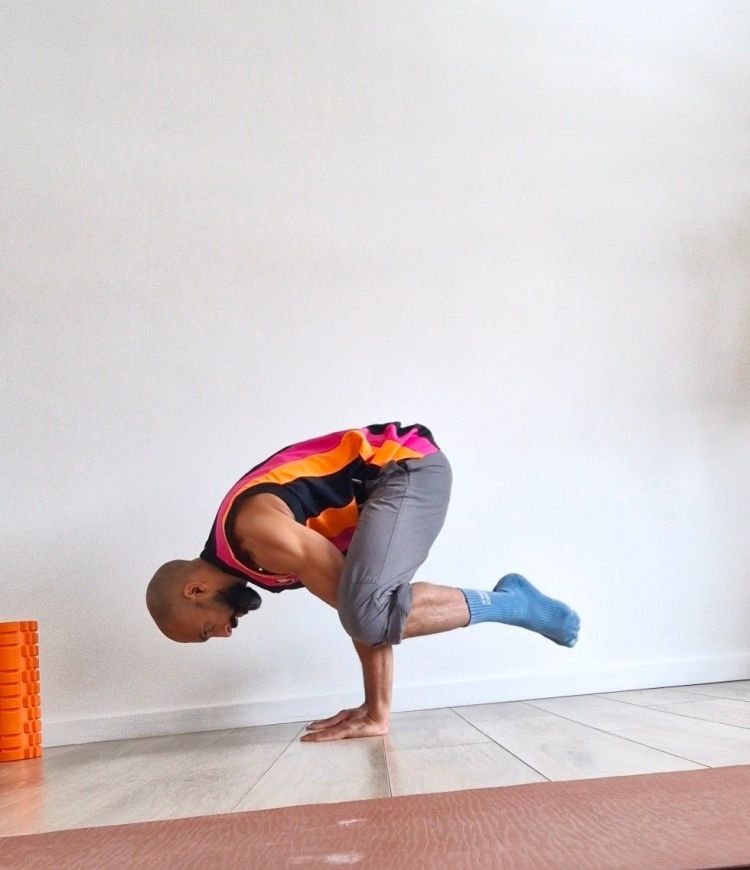 That’s why we start with frog pose — the gateway movement. (You know how people say cannabis is the gateway drug? Well, frog pose is the gateway to handstands. Except this one actually improves your life.)